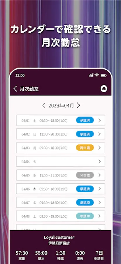・The attendance management system of Stub Reforce can be used free of charge by your own staff.