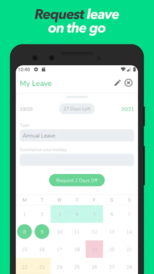 • Manage your own annual leave, including holiday submission & deletion using our simple calendar
