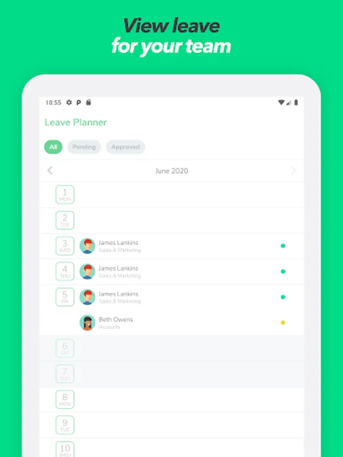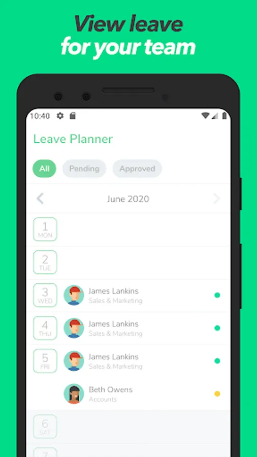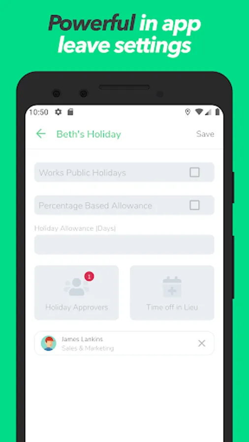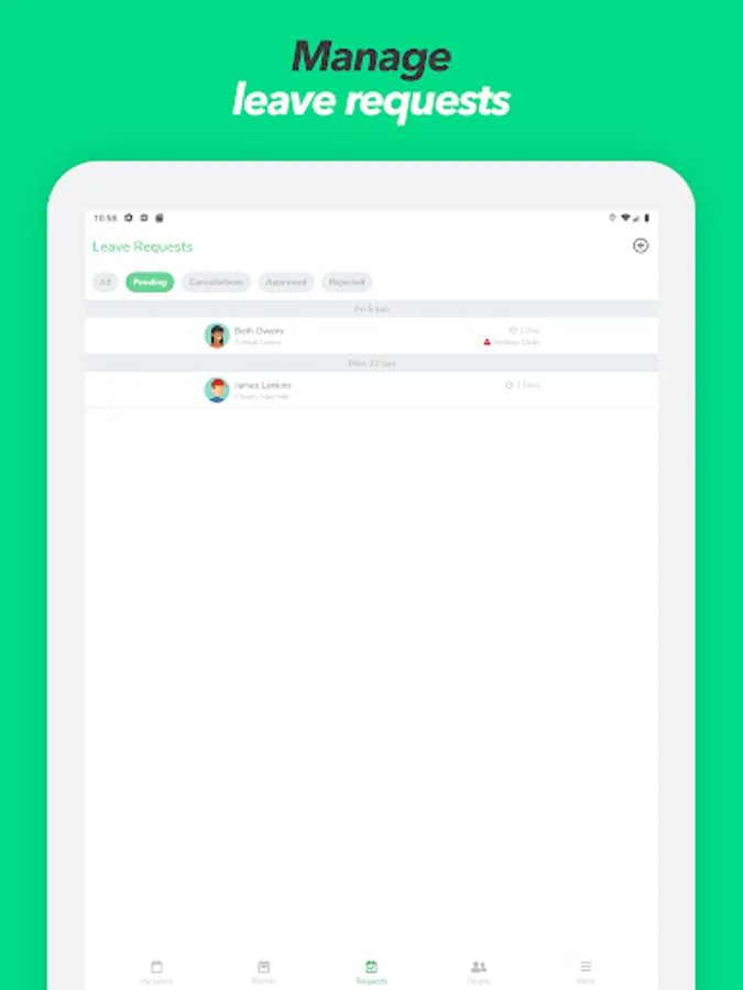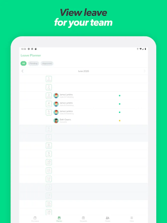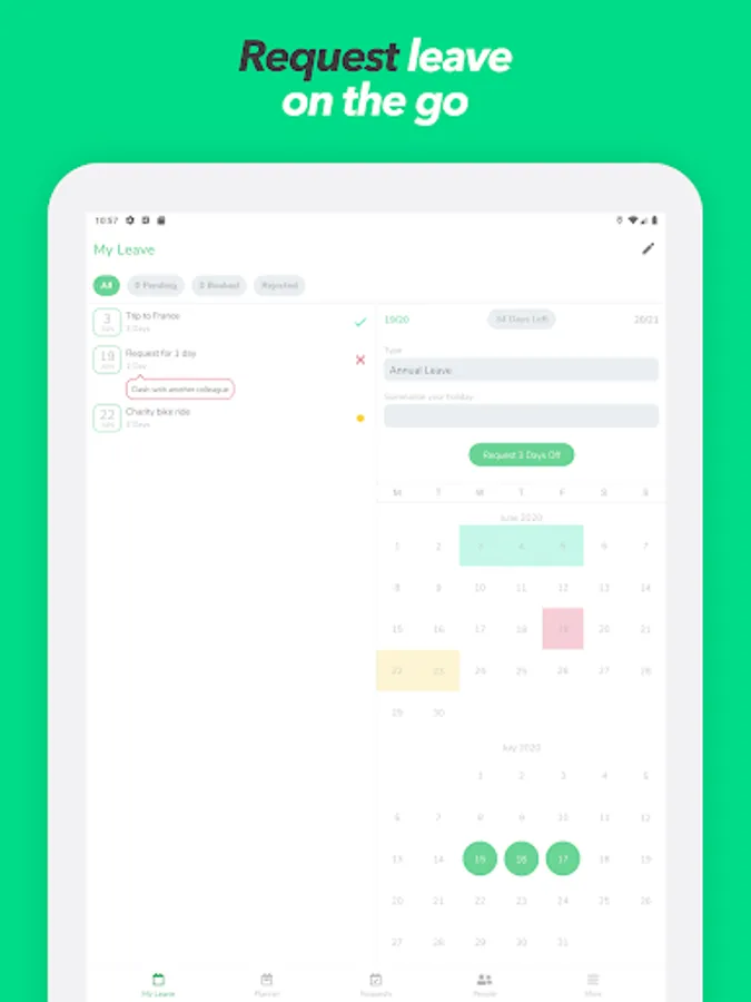 The staff leave app makes booking annual leave easy, letting employees request leave from anywhere. No more second guessing who's not in!