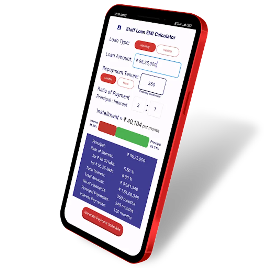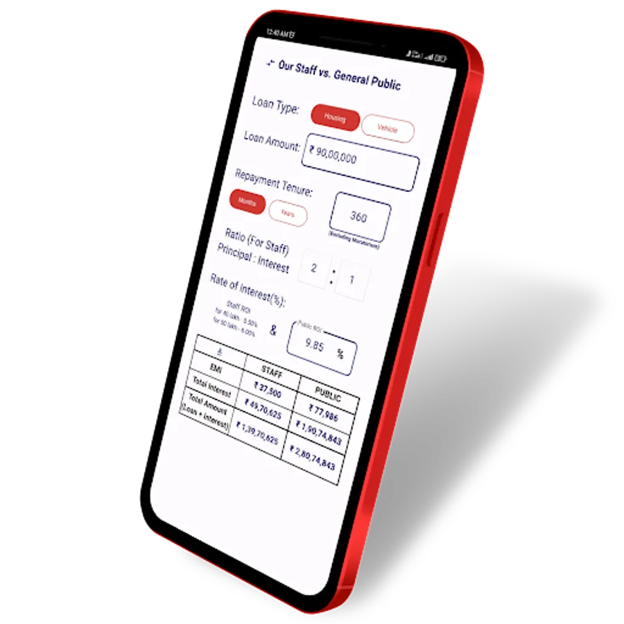 Make informed financial choices by comparing staff loans with loans available to the general public. Our app provides a unique Staff vs Public Loans Comparison feature, enabling you to analyze interest rates, EMIs, and total amounts. Empower yourself with the knowledge to make the best decisions for your financial future.
