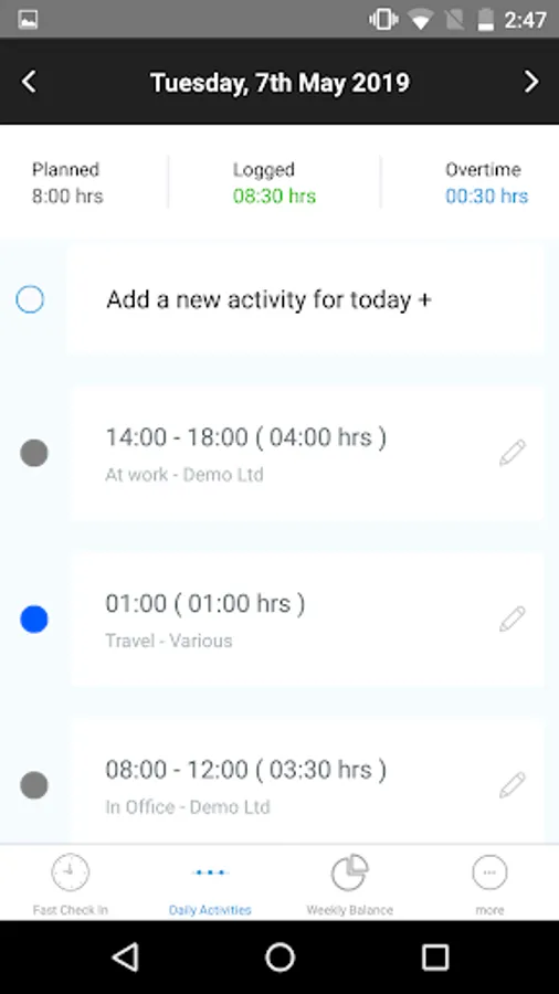 Ideal for business owners, accountants, HR professionals and project managers. Works for a wide range of trades and industries with mixed teams of permanent (5-day working week), part-time, consultant & freelance staff. Create activities, manage annual leave & submit absences and log on-site services.