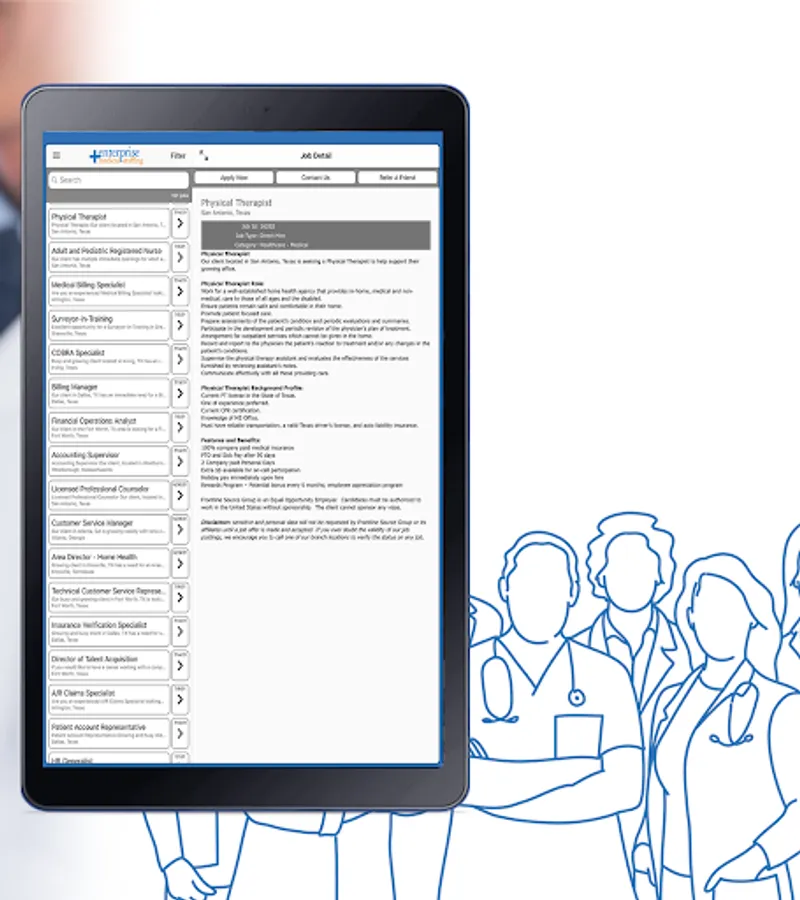 Enterprise Medical Staffing Agency is a full-service travel agency and healthcare staffing company that utilizes a combined effort of proven traditional search methods along with state-of-the-art technology to find your company the exact professional that you need.