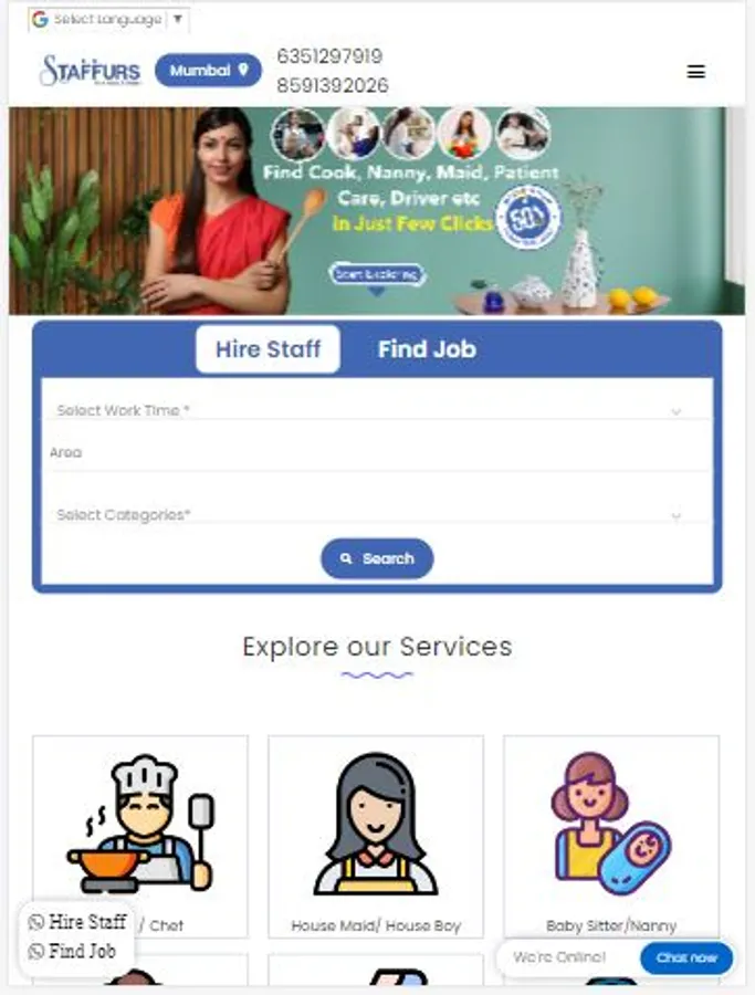 पाओ अपना मनचाहा काम मिनटोमें (मेड, बेबी केयर, पेशेंट केयर, ड्राइवर, कुक, शाॅप हेल्पर, हाउस बाॅय)