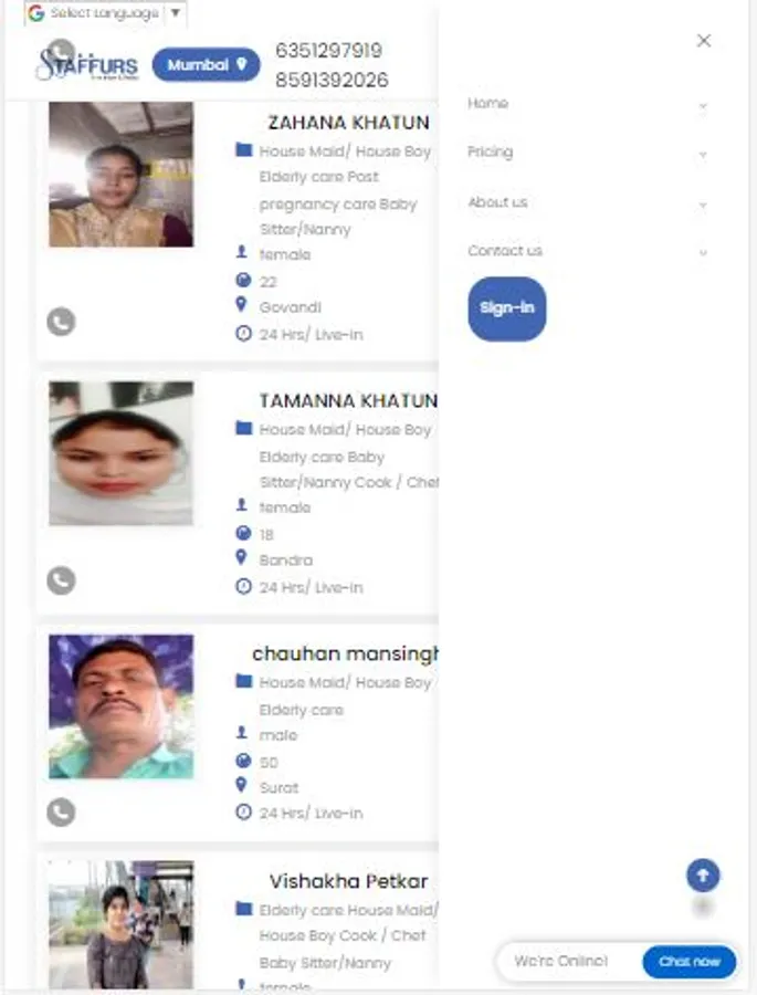 Hire domestic staff near you in few cliks - Housemaid, nanny, babysitter, cook, patient care, elderly care, driver for lacs for profiles