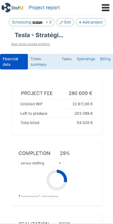 Find in the application all the features you are already using online : projects, CRM, staffing, expenses... everything is in there !