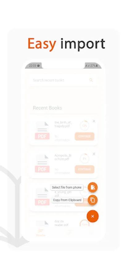You can import books and text documents from your phone and start reading in just a few clicks. If the need arises, you can paste the text from your clipboard and start reading it in our app.
