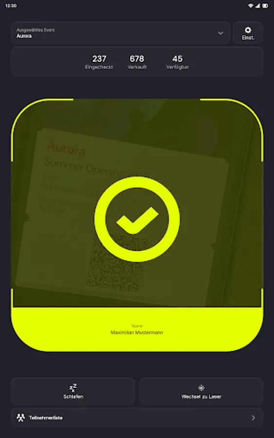 Using the app under “My Events” you click on the focus area to open the ticket scanner – scan the ticket and you’re done. Don't want to take control yourself? No problem! Assign user roles to security staff for ticket scanning. This way you can clear your head and concentrate fully on your event.
