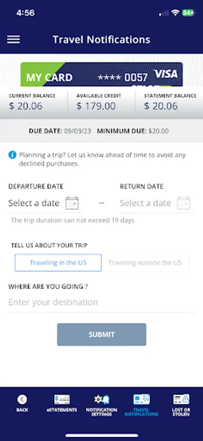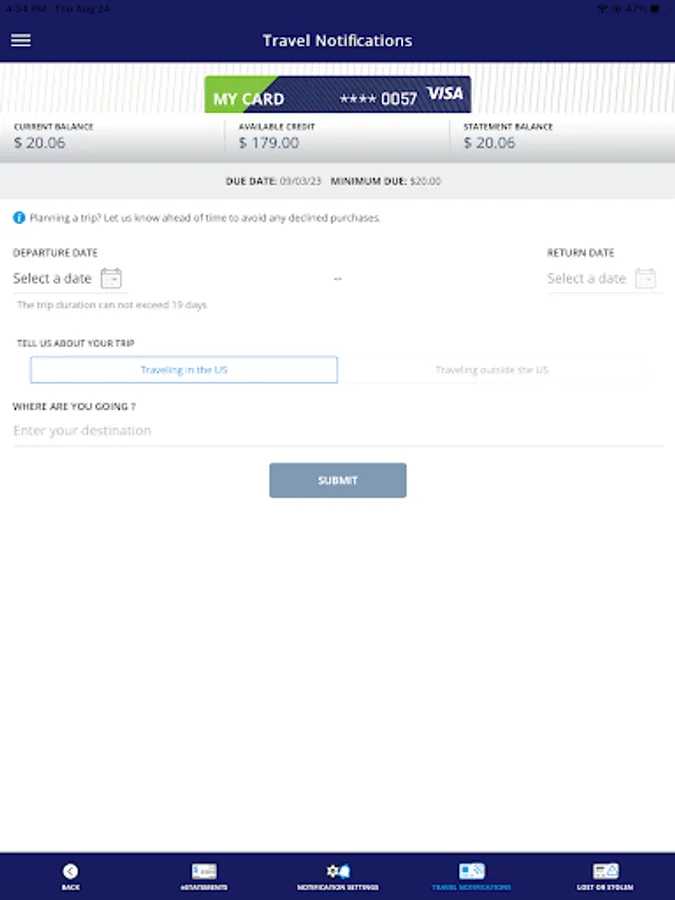 • Set your own travel notifications- don’t have your card denied for out-of-town purchases, set it and forget it