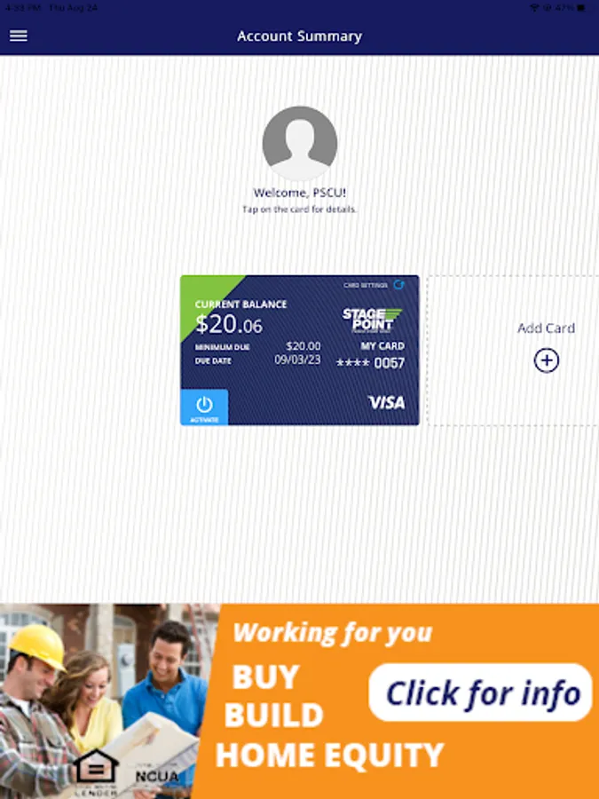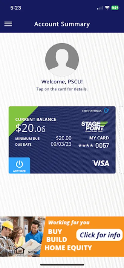 In partnership with PSCU, we’re excited to offer the StagePoint Card Management Mobile App. Our StagePoint Card Management App allows StagePoint Visa cardholders to check their credit card account balance, manage alerts and controls, turn their card on/off, and report their card lost or stolen – all from one, easy-to-use platform.