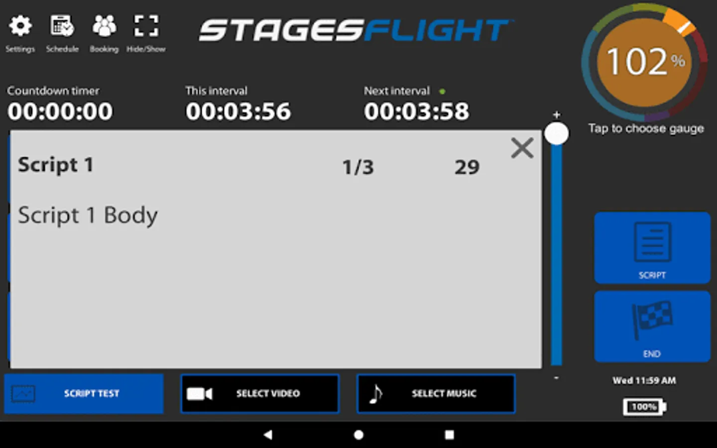 Stages Flight Control: Instructor tablet interface available only for Stages Flight studio customers.