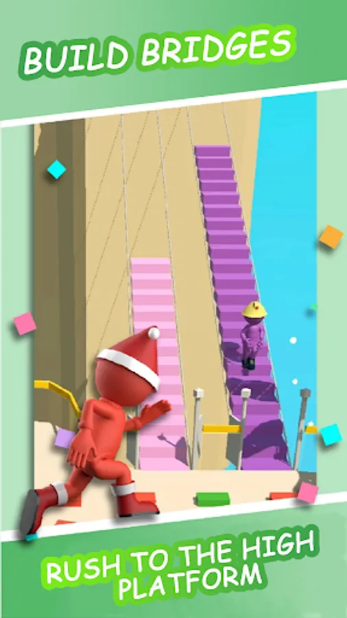 In this unique bridge stacking game, stack the bridges with the same color as the player, and move away from the wrong bridge colors. Stack enough color bridges to build a bridge tower. Use stacked bridges to build a bridge way to run through. More bridge, more fun.