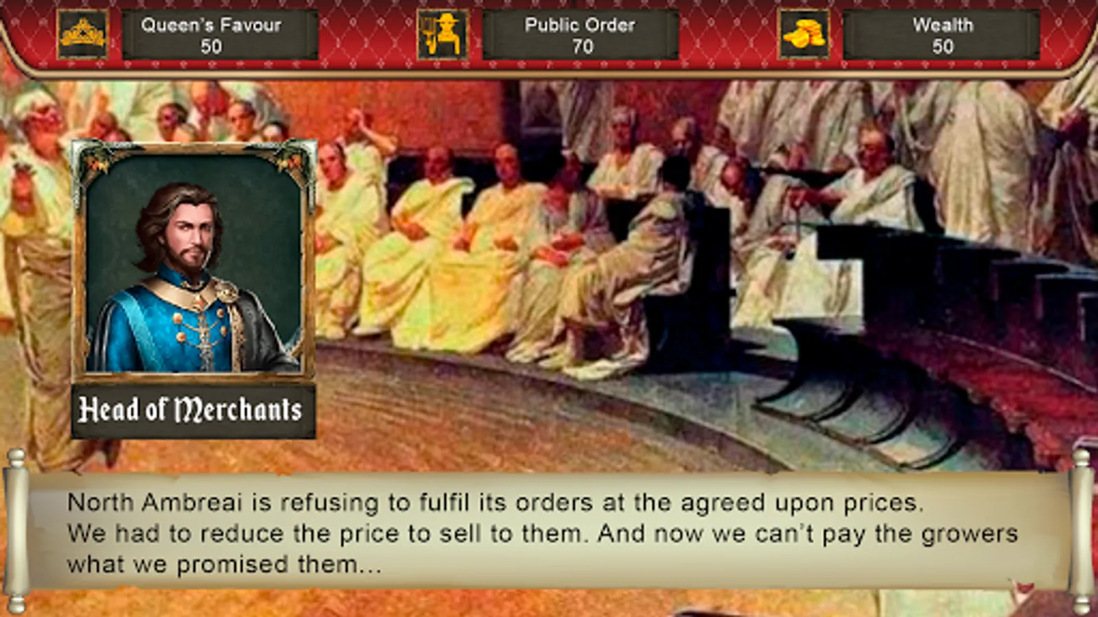 Consiliario is a game created for employees of Keva which take them to the kingdom of Zohran as a trusted advisor to the queen. The player has to make decisions that are in line with Keva values while ensuring that the queen is happy, the kingdom is rich and the people are content