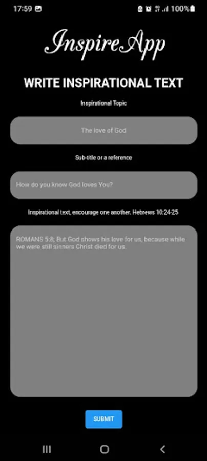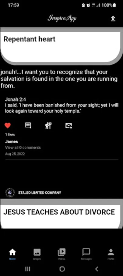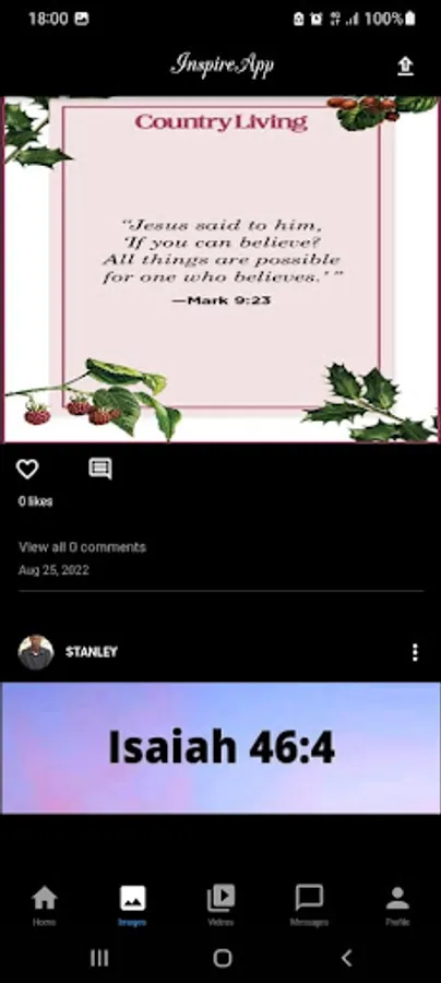 This is a Christian based App meant to inspire, Uplift fellow brethren, It is Social Media App that Allow people to Inspirational, Text, Images and videos that are Inspiring.