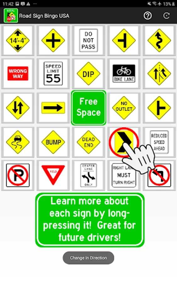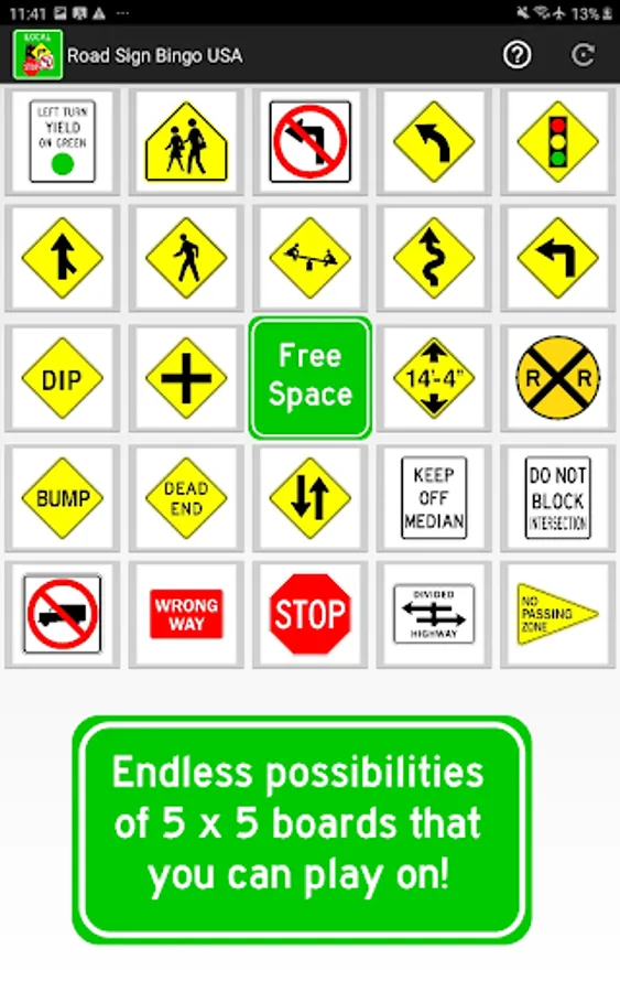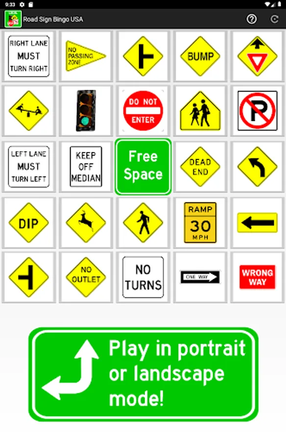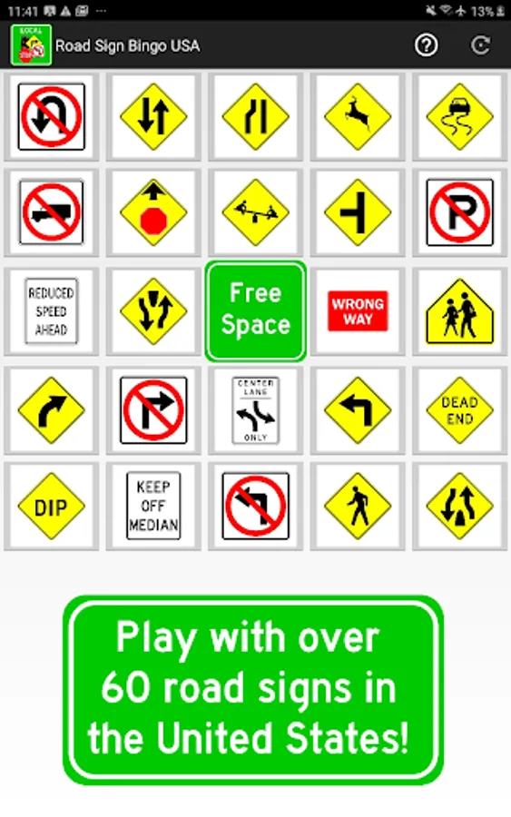 So what are you waiting for? Take the exit ramp to our road sign bingo game for FREE and let the fun begin! No Internet connection required.