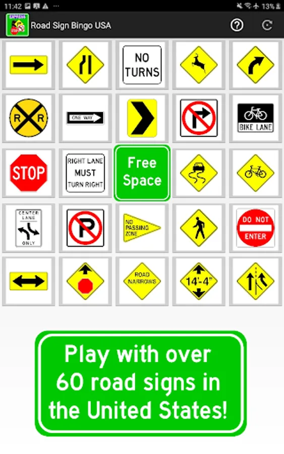 This is the Express Route version of Road Sign Bingo USA, which does not contain advertisements and is yours to enjoy if you are willing to pay a one-off toll of 99 cents. We appreciate your support.