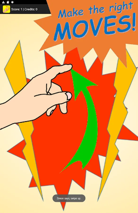 The intense thrill of alertly following Simon's orders while avoiding fake commands can now be experienced at the palm of your own hand as an endless arcade game! Using your lightning-fast reaction and impeccable judgment, make the right swipes, taps and nudges to earn points and keep the game going...but only if you hear "Simon Says", of course! The better you play, the faster the game gets, and if you ever hesitate to make the right move, or fall for a fake command, it's Game Over!
