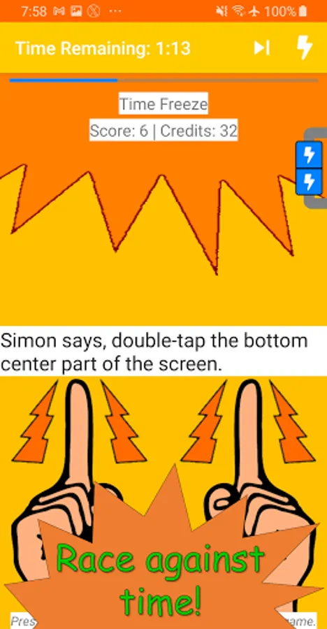 For a game so nice, we had to make it twice, we've doubled up the game modes for two times the fun! Test your reflexes and judgment to survive Simon as long as possible in classic Simon Says gameplay, or hone your speed and aggression in the all-new single-player Frenzy mode, in which you race against time to obey as many Simon commands as possible without fear of a game over for making mistakes. Either way, you'll be using intuitive mobile gestures to do whatever Simon tells you and push your way to higher scores.