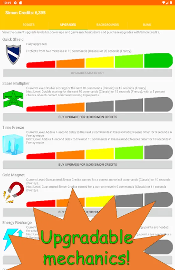 The goal of being the best Simon-follower remains - but the way you go about doing so has been reloaded with new mechanics that'll deliver a rude awakening to anyone expecting this sequel to be similar to the first game! For instance, you'll unleash power-ups during gameplay by making the right moves to load (and reload) an energy bar...or by finding pickups that spawn on-screen. And you can permanently upgrade power-ups and mechanics, as well as temporarily boost the abilities of backgrounds you've acquired...if you have enough Simon Credits. Even better, find and draw Last Chance Cards that come into play when you're down, but not out in hopes of gaining extra bonuses, or even a chance to get back in the game!