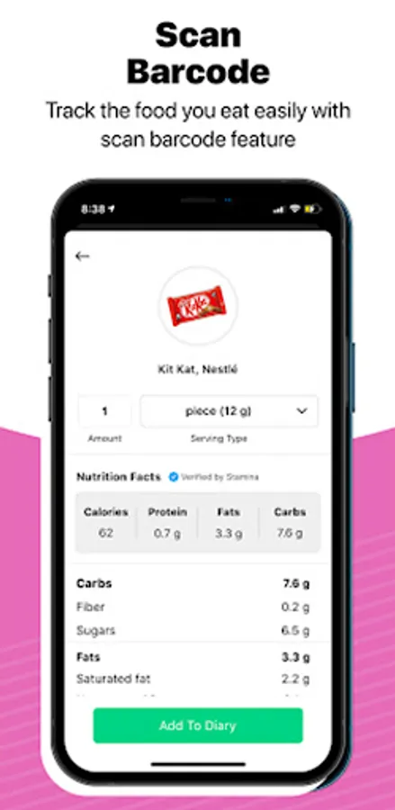 - Tracking calories and macros by searching in our database, scan barcodes, or create your own food and recipes.