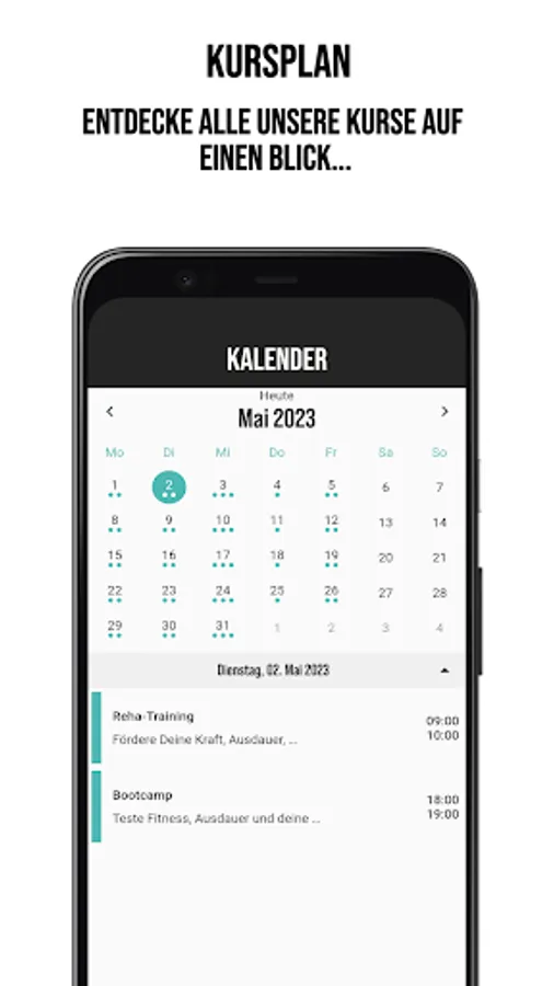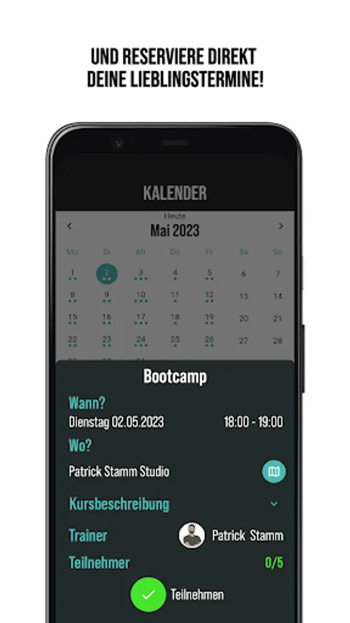 Our app offers numerous ways to achieve your training goals. Easily arrange appointments for personal training with your trainer via the in-app messenger or book your next course. With the Stamm Fit app, you always have access to individual training plans created by your trainer and can track your personal progress - no matter where you are.