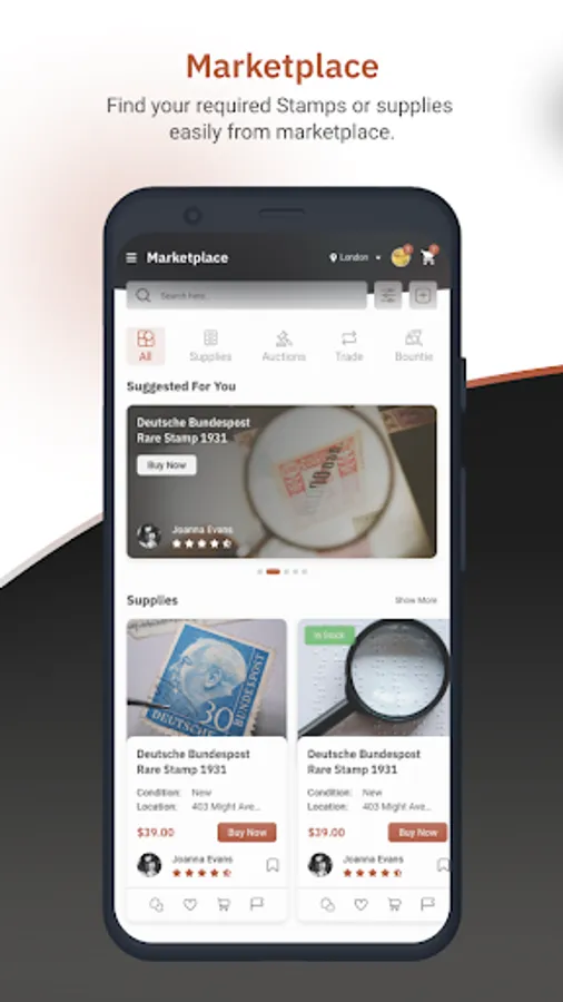 StampBox is the ultimate app for stamp collectors looking to manage and grow their collections. With a clean and intuitive interface, you can easily catalog and track your stamps, and explore a comprehensive database of stamps from all over the world. Our intelligent search feature allows you to find and add new stamps to your collection with ease. Connect with other collectors to trade, auction and even offer a bounty to grow your collection. Whether you're a seasoned collector or just starting out, StampBox has everything you need to take your hobby to the next level. Download now and join the community of passionate stamp collectors!