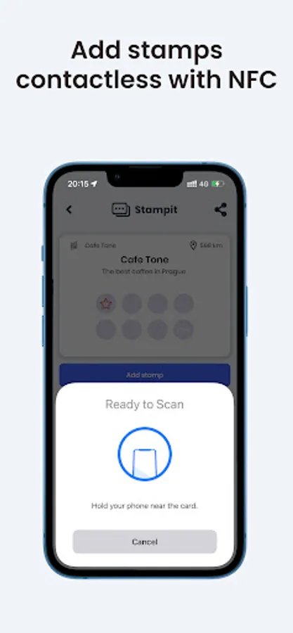 Adding stamps is done with help of NFC. You will just visit a store with the Stampit loyalty program, hold your digital loyalty card near by the store's little wooden box that holds NFC tag, and after a very short moment, you will have another stamp on your card.