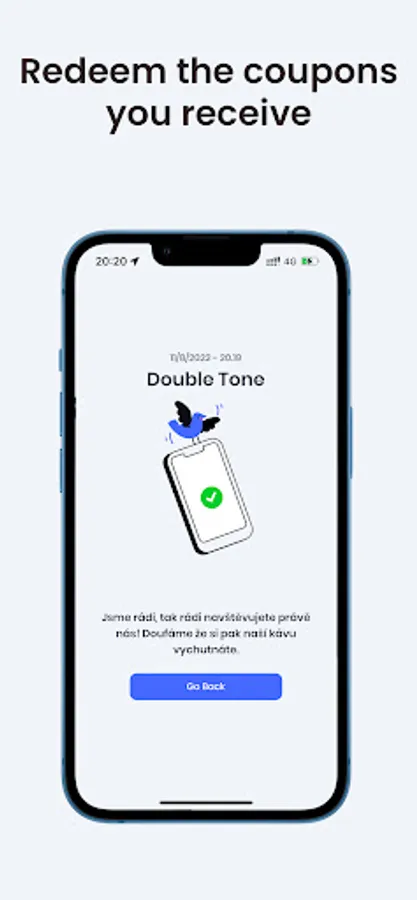 When you collect enough stamps at the store, you can redeem your coupon the same way you collect the stamps. You click the "Redeem coupon", place your phone neer by the store's NFC box, and after a moment of verification, you will get the valid coupon that you can use to staff and enjoy the reward four your loyalty.