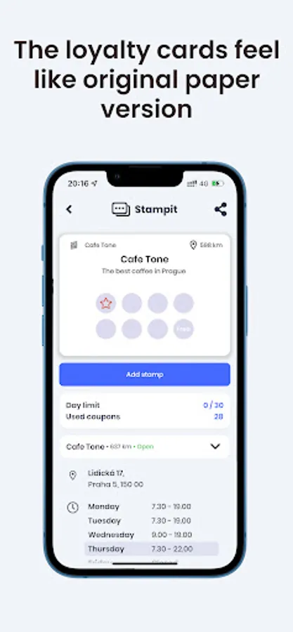 Stampit app was build to replace current paper version of loyalty cards, which are easy to lose, or they are just being used as bookmarks. In the app, you can add them in digitalize version, where they look the same as the current paper version.