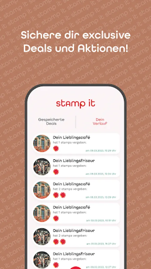 The StampIt User App is a digital stamp card to digitally collect stamps from local service providers and unlock deals. To create a new account, the user enters their telephone number and profile data and receives a verification code via SMS. The user can receive stamps via a QR code. If the stamp card is full, the user can select their deal and have it scanned and redeemed via a QR code. The user has the option of using the map to see the locations of the service providers, as well as his own location. Each shop has its own individual stamp card, as well as an overview of the offers, services and pictures. The user can be forwarded to social media profiles via the business profile, as well as contact the business directly and view opening times. Furthermore, the user has the possibility to understand the history of each scanned stamp and deal as well as to call up and redeem saved deals. We are a young start-up company, consisting of a team of 5, combined with expertise from various areas such as software development, gastronomy, beauty and retail. Our mission is to digitize the service sector throughout Germany and Europe in order to give smaller companies the opportunity to position themselves successfully in the change of digitization. You can do that with the help of our app!
