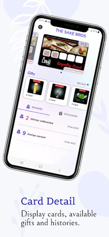 They can exchange related merchant's gifts with their full stamped cards in our application .
