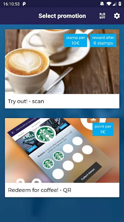 Using this app cashiers or your delivery team can give customers points or stamps by only scanning the personal QR code of the user (which can be found in the Stampwallet app of a user under settings > show qr code).