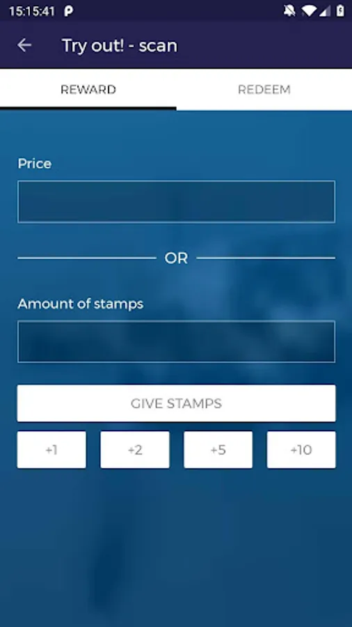 * You can also just fill in the amount of stamps / points and scan the QR code code of a user to give stamps instantly.