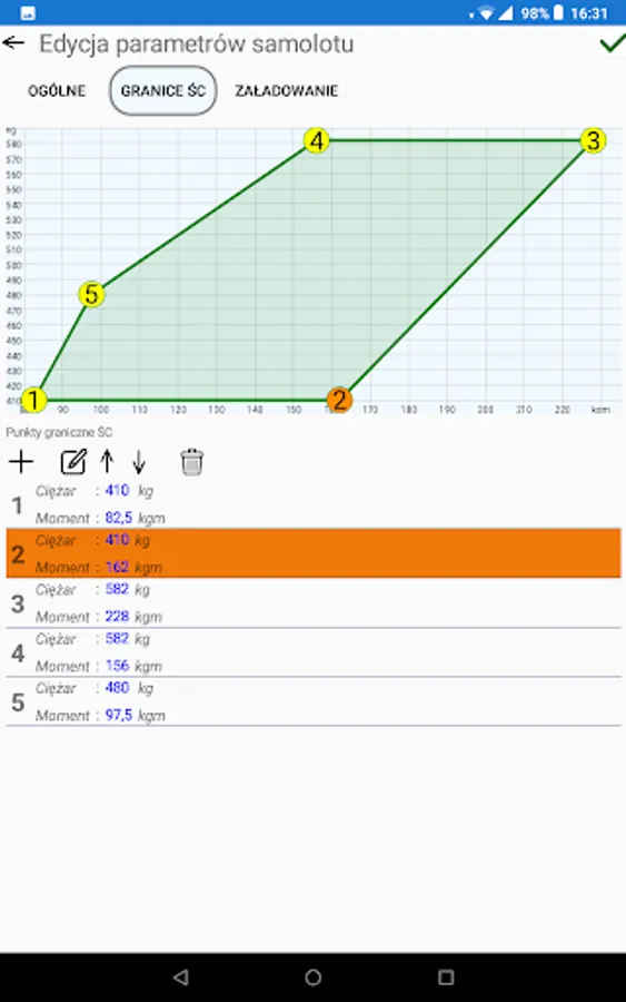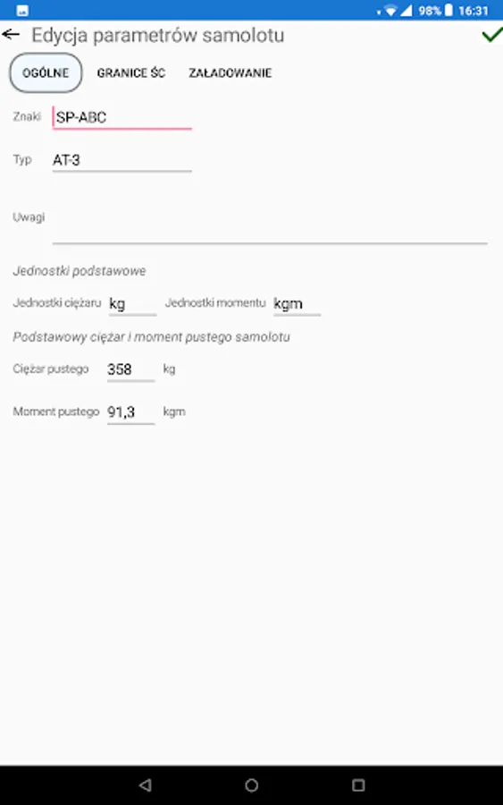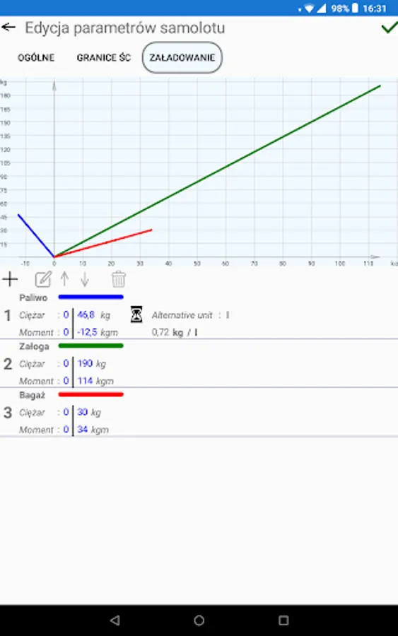 According to the POH, you can define the weight and the moment of an empty plane, CG limits and loading elements such as fuel, crew and baggage.