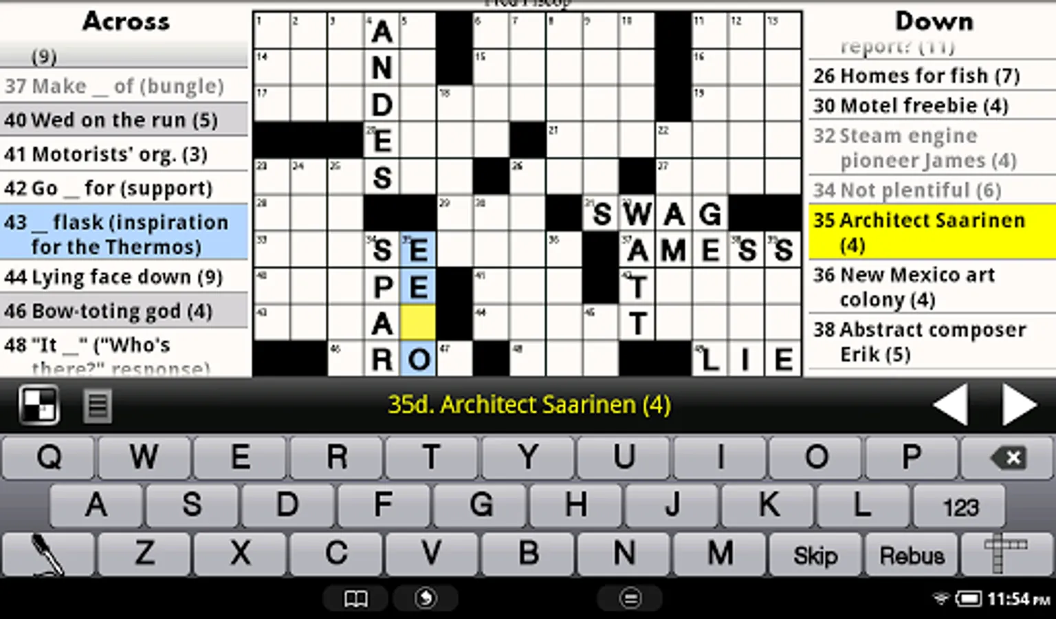 Crossword Light for Android lets you solve crosswords from around the world, right on your hand held! Over 30 puzzles available, plus hints, clue listings, and tons more.