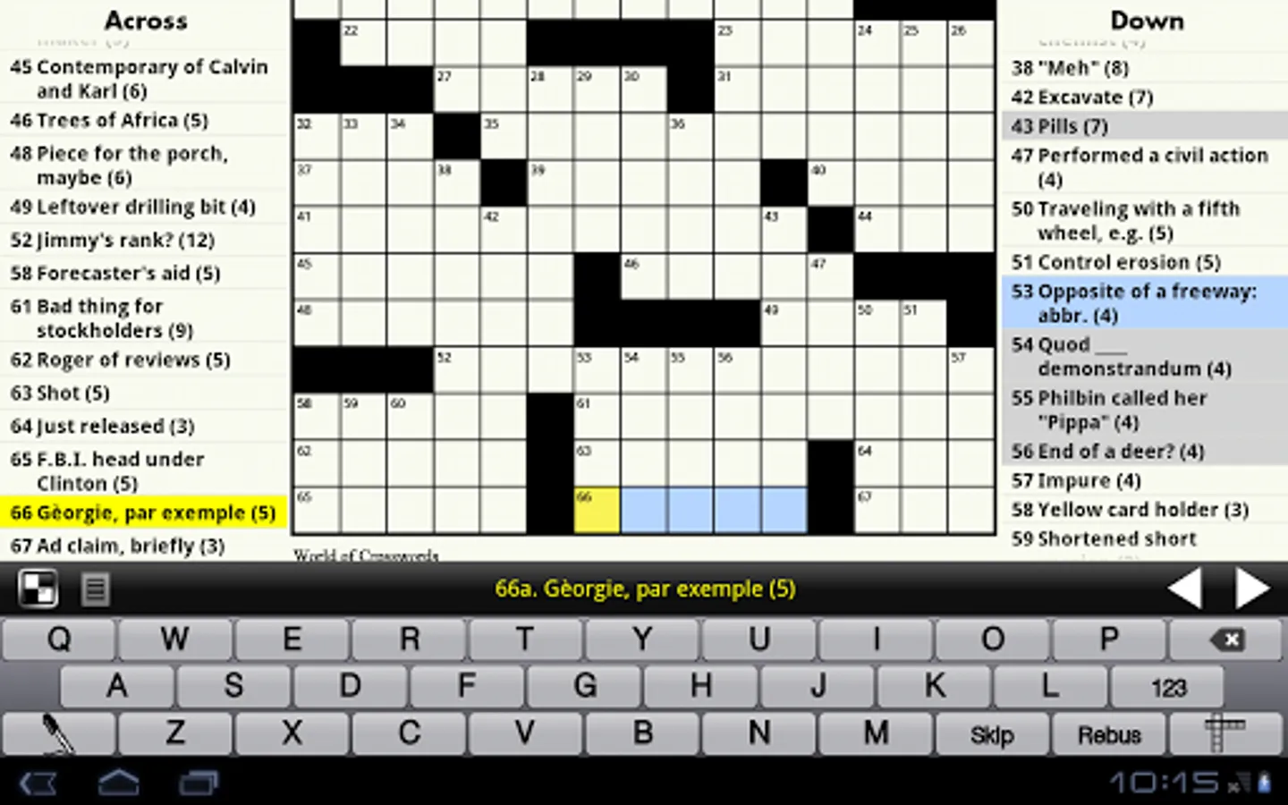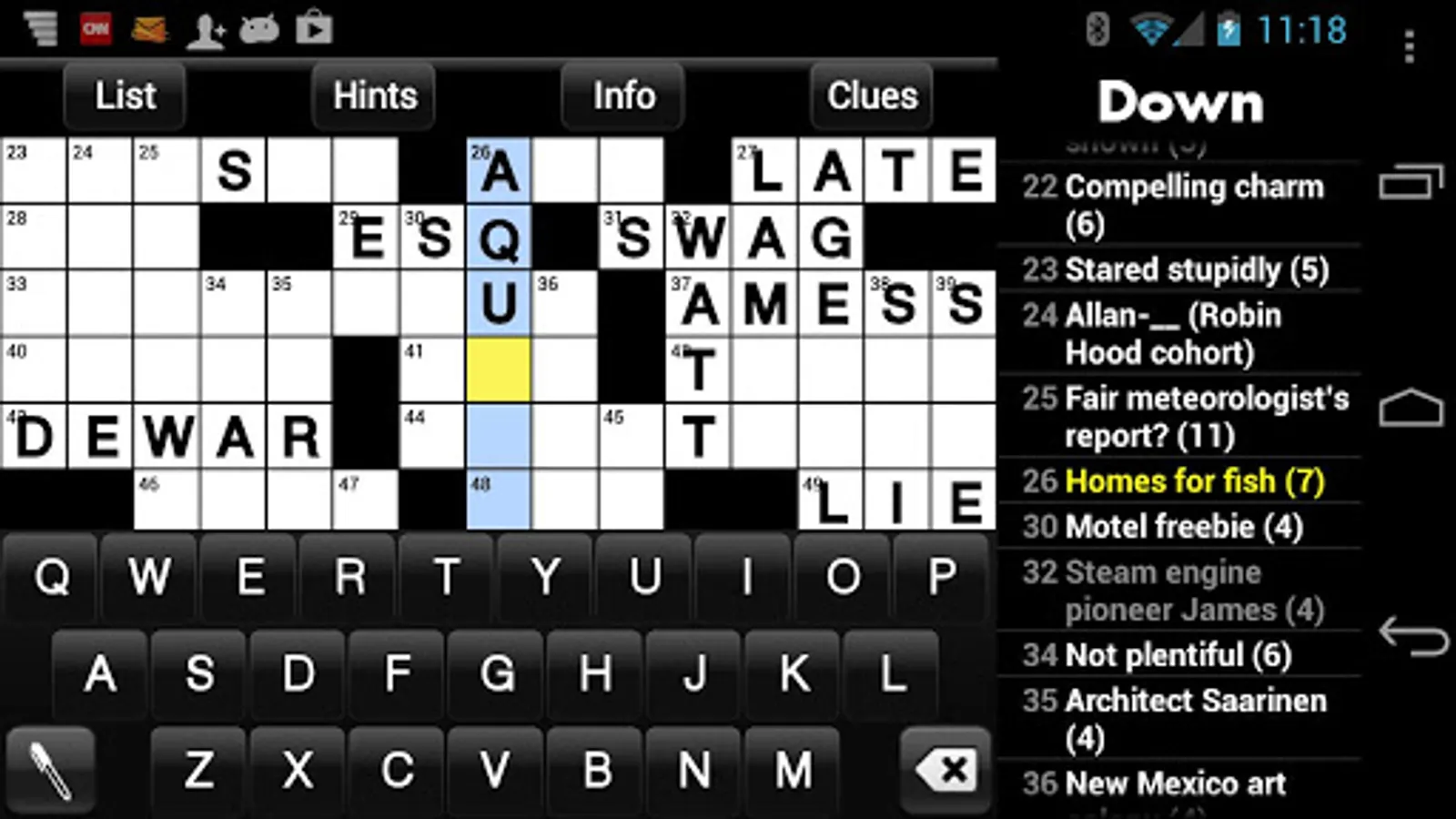 Crosswords for Android lets you download and solve crossword puzzles from around the world, right on your handheld! New puzzles available every day from major newspapers, plus hints, clue listings, and tons more.
