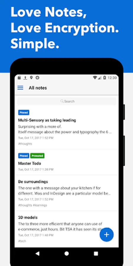 Simple means it does one job and does it well. Standard Notes is a safe and lasting place for your life's work. Our focus is making it easy to write notes wherever you are and syncing them with encryption to all your devices.
