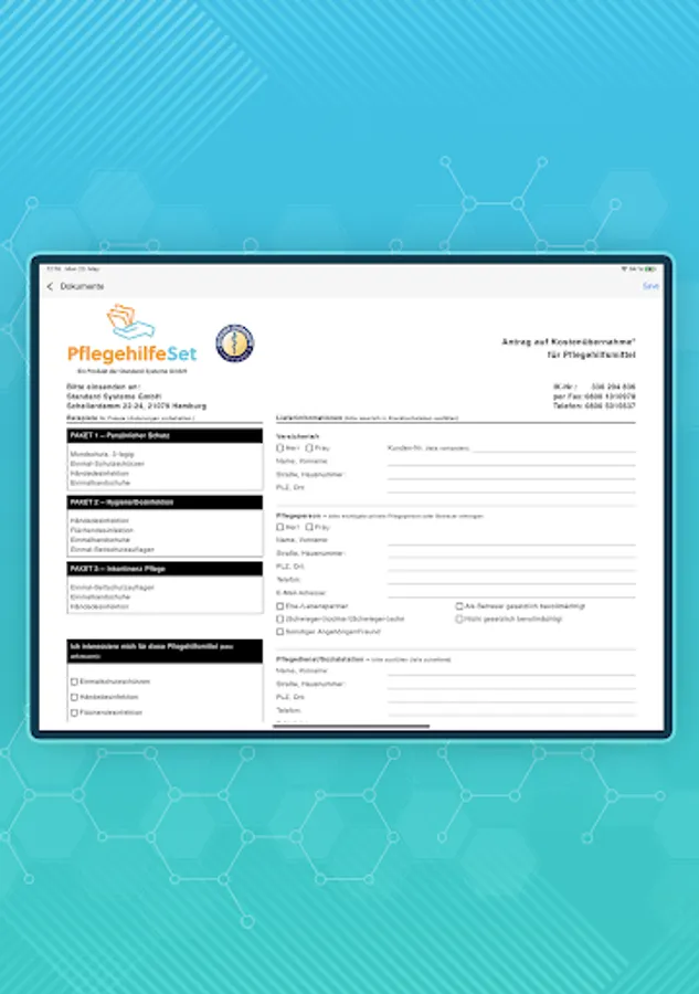 With the "Pflegehilfeset" you can finally have the order forms signed on the spot! Nothing stands in the way of the sales team anymore