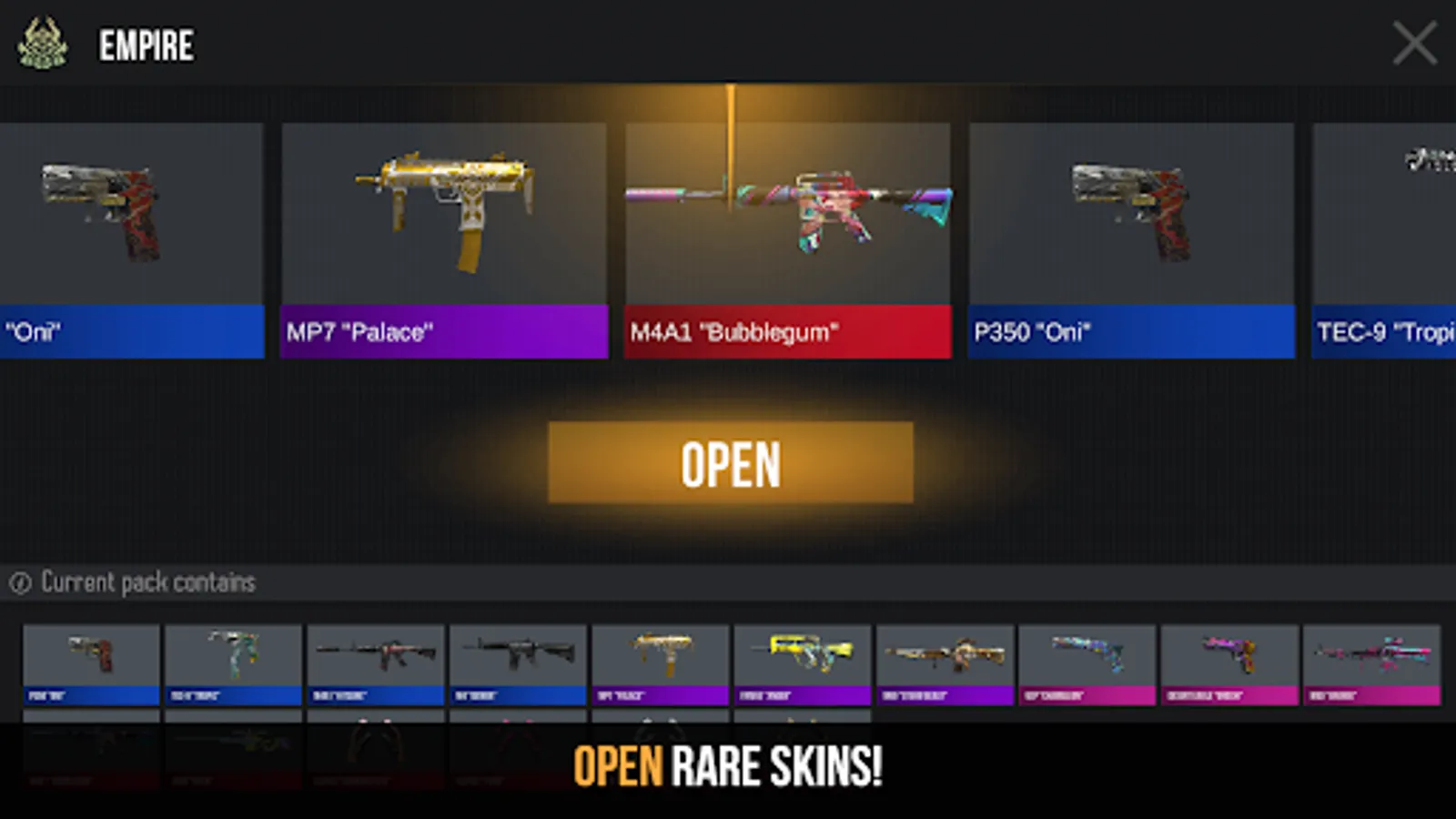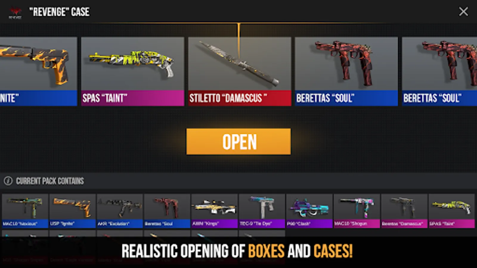 Denial of responsibility: The game does not manipulate the inventory in any way. This is a case simulator that simulates opening cases and boxes. The output of skins or any other items into the original game is impossible!
