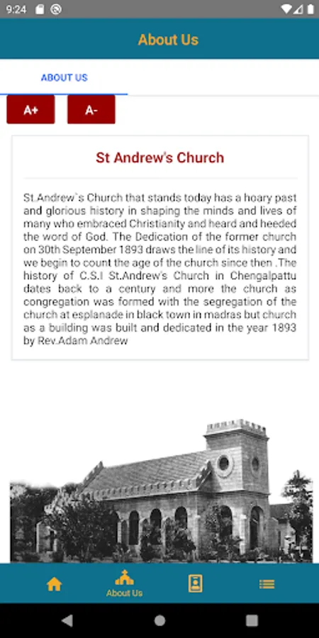 CSI St. Andrew's Church, Chengalpattu (since 1893) celebrating 125 glorious years releases this comprehensive Daily Devotional cum Connecting app that connects all its registered members and contains the Daily Reflections, Sunday Service Reflections, Inspirational Thoughts, E-magazine, Prayers as well as other spiritually uplifting contents even in the regional language to make you grow in your christian faith. It includes : Media LIVE, Events and Announcements about the upcoming programs and events. This app helps its community members to stay connected and integrated.