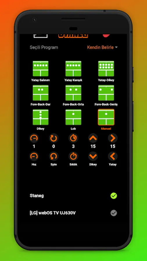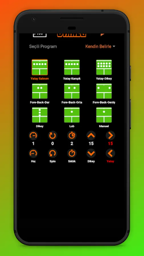 Horizontal: Changes the horizontal angle. This setting is active in the "Vertical Swing", "Lob" and "Manual" programs.
