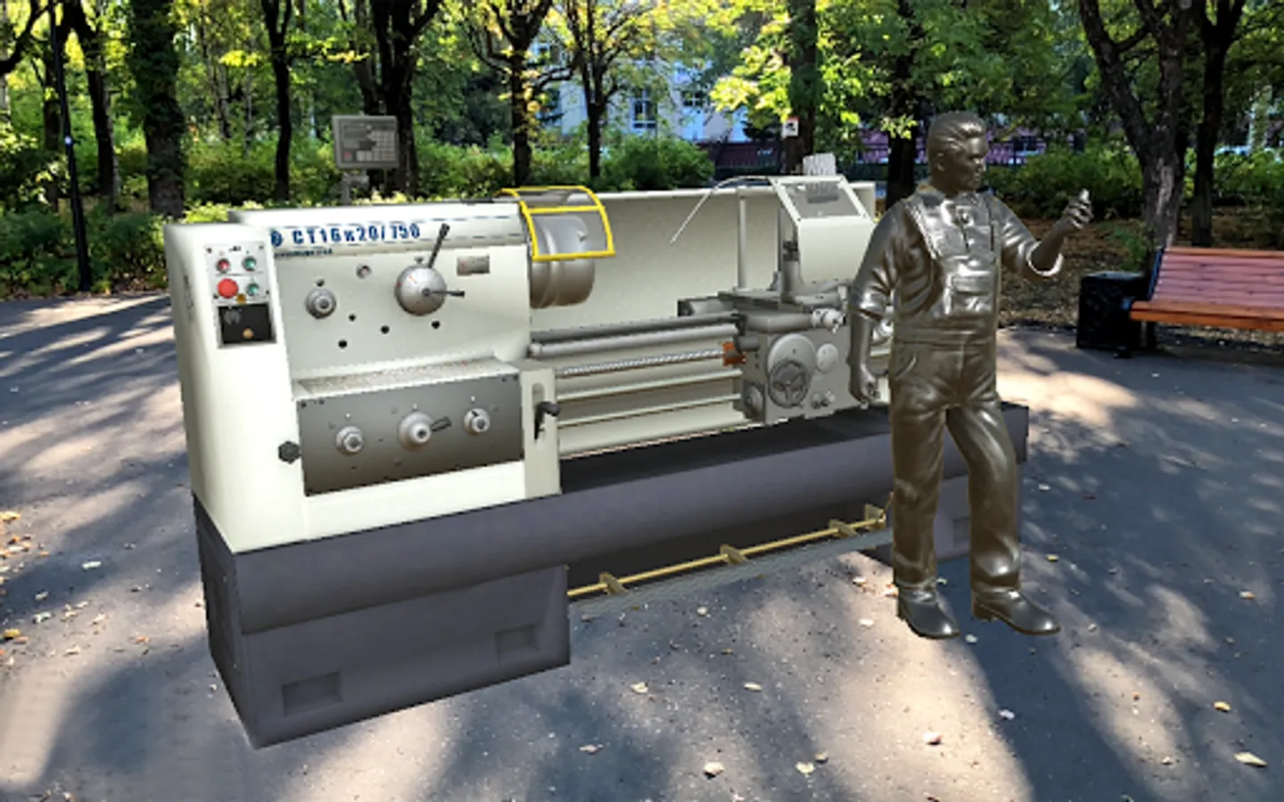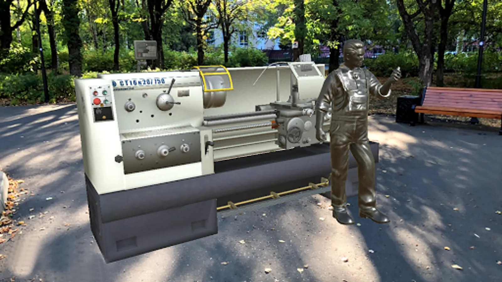 Visit the "Mashinostroiteley Square" in Penza, where the only "Monument to the Turner" is installed in Russia and immerse yourself in the world of augmented reality. You will find an interesting story about the history of the invention of the lathe and its development. You will be able, in augmented reality mode, to look at the process of machining a part on a modern lathe CT 16k20.