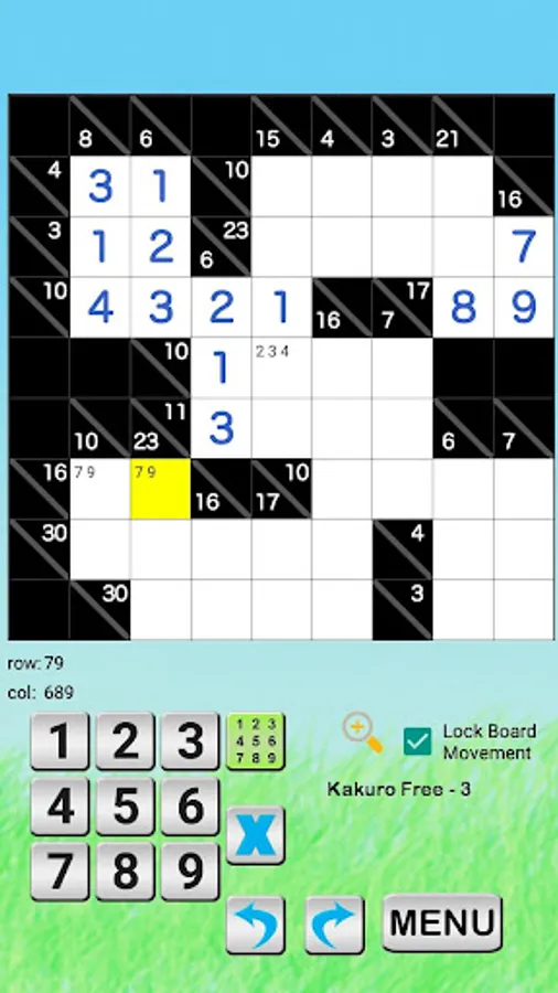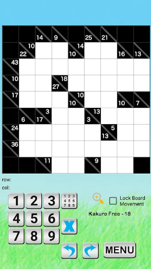 Kakuro is one of the oldest logic grid puzzles. Kakuro is like a crossword puzzle with numbers. Each word must add up to the number provided in the clue above it or to the left. A given number can only be used once in a word. Every kakuro puzzle has one and only solution, and can be solved through logic alone.