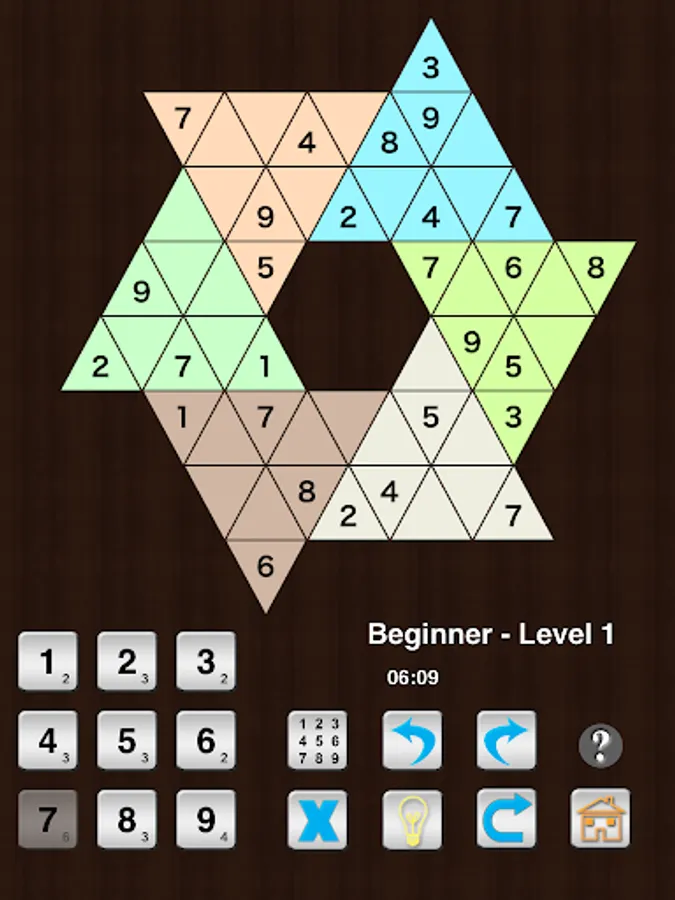 Star Sudoku - Six Large Triangles Make New Challenge. Ultimate Logic Puzzle Brain Teaser for People who like Sudoku. Suitable for kids, boys and girls. Easy at start, get difficult on higher levels.