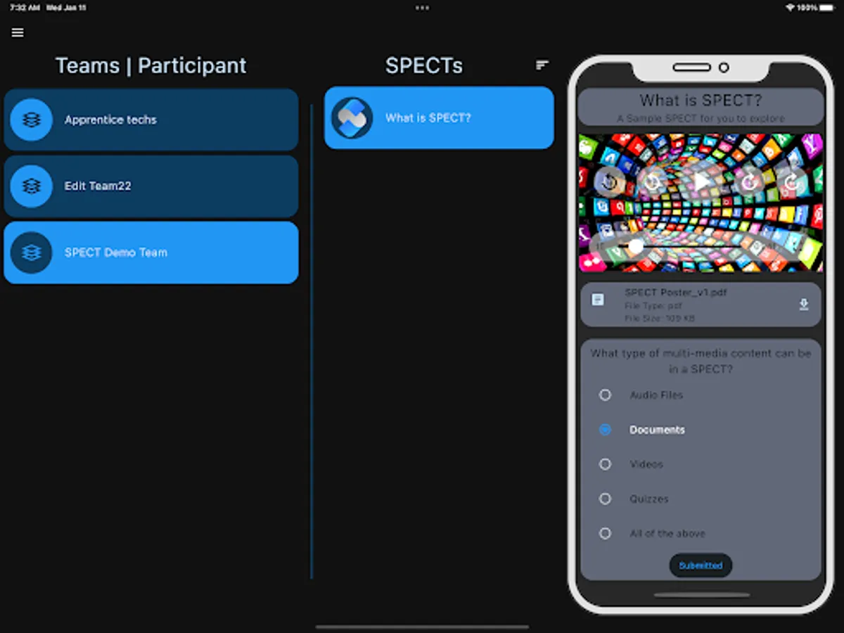 For a remote team, SPECT can provide small training reminders, product updates or new messaging in a convenient, “view-it-when-you-can” format with a casual, fun feedback loop to confirm your key points have been accurately communicated.