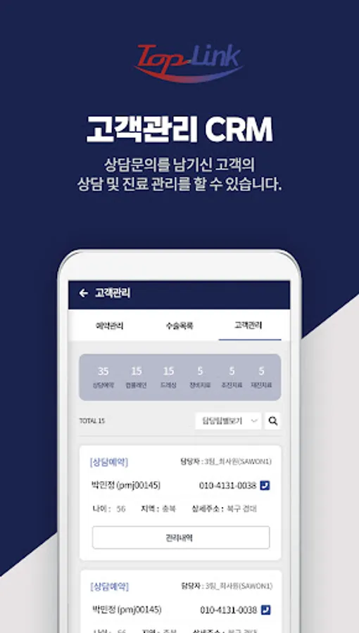 Customer (Patient) Management With CRM, you can manage customer consultation and treatment. In addition, it is possible to work smoothly on mobile by linking frequently asked questions and data rooms.