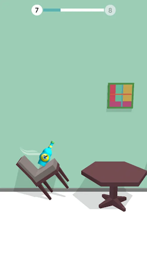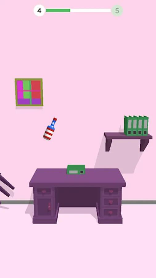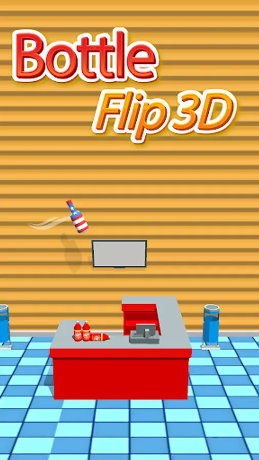 In this Bottle Flip game you can face a lot of hurdles you have to choice where you want to jump just tap on the screen and jump from the hurdles and land on places like table, chairs, Vacuum cleaner, fan, books, computer monitor, ladder and many more. You can flip in air 3 times for long jump.