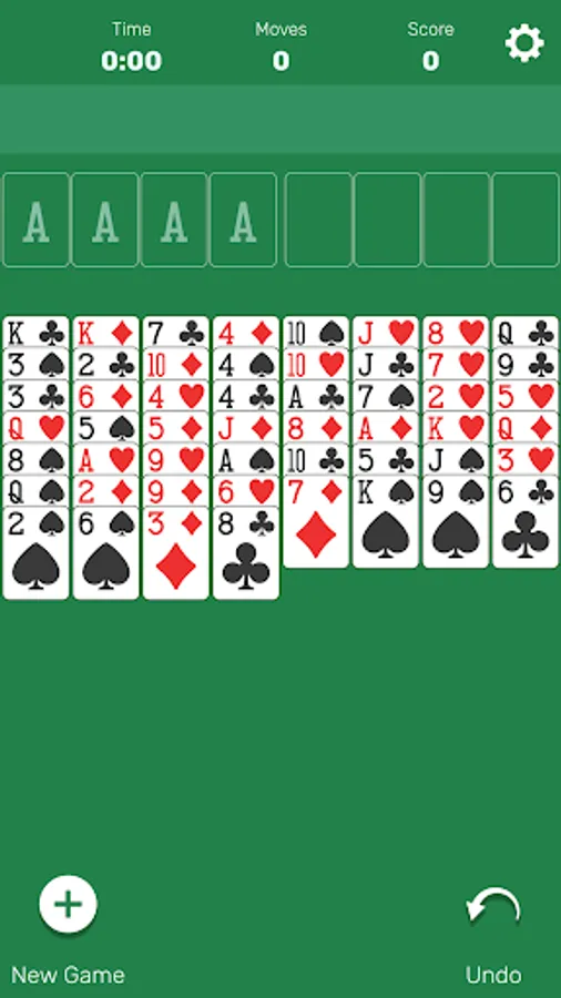 - Move all 52 cards up to the four foundations (top left) in sequential order, Ace to King, for each suit
