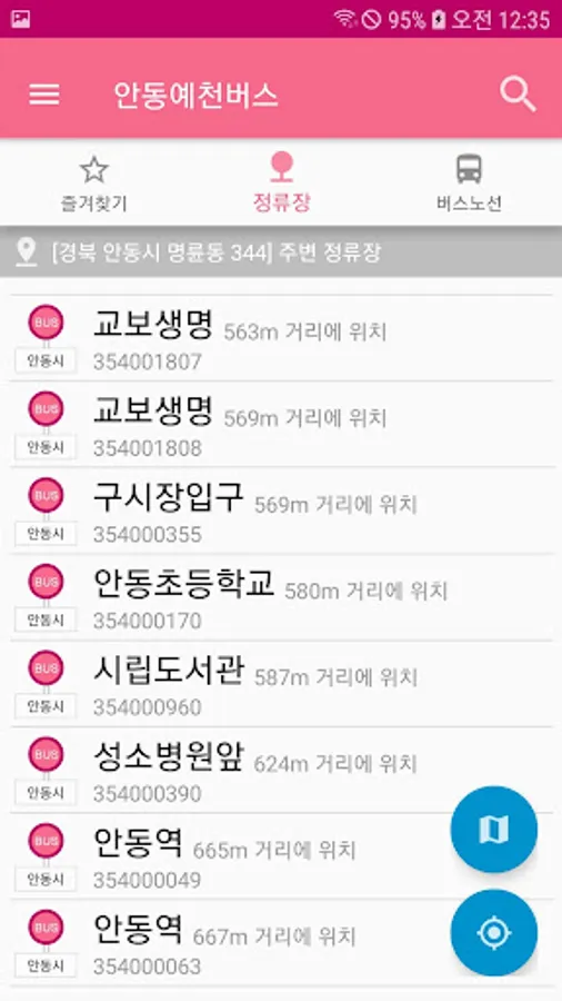 - 현재위치를 기준으로 한 정류장 보기
