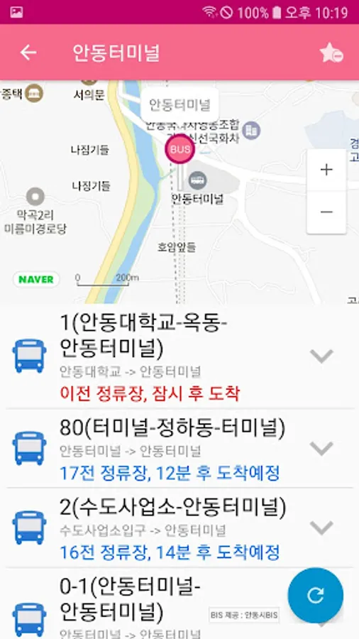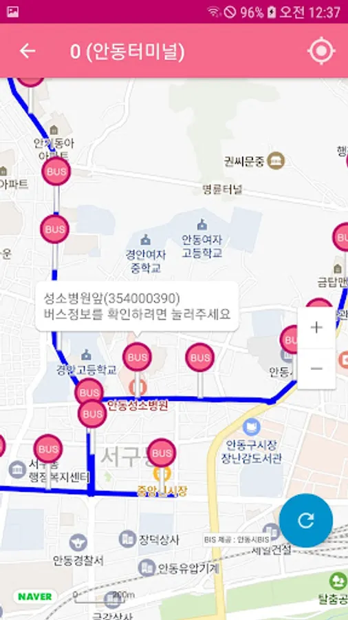 2. 안동예천버스 앱은 안동시와 예천군의 BIS로부터 정류장 및 노선정보, 실시간 도착정보(BIS)를 받아오고 있습니다. 잘못된 정보는 해당 버스회사 및 제공처에 문의바랍니다.