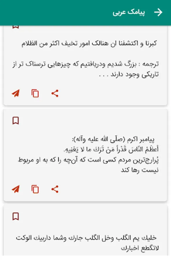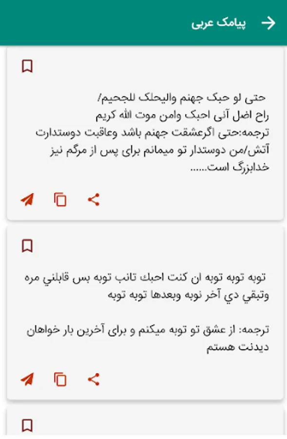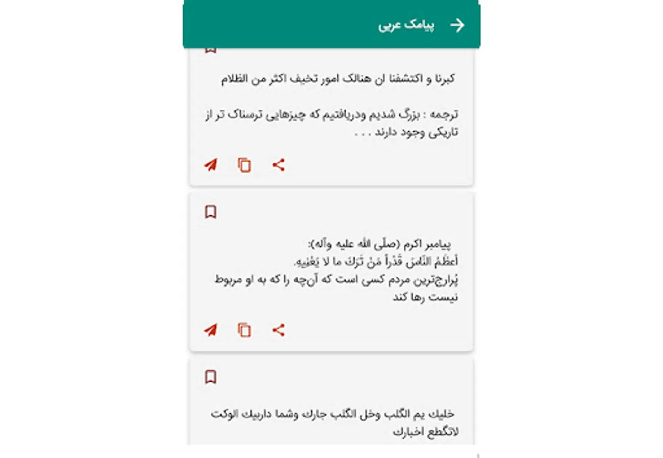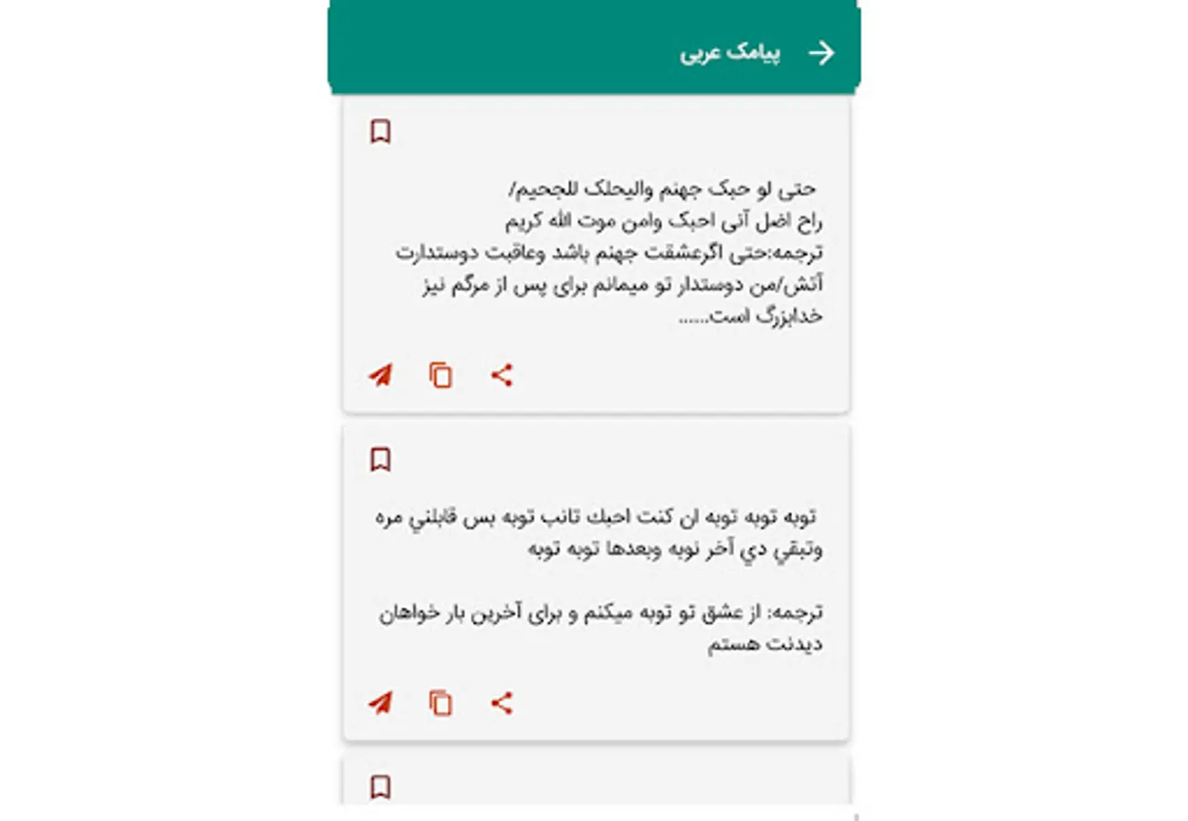 In this program, we have provided a beautiful collection of Arabic text messages with Persian translations for you dear users, and we hope that this Arabic text messaging application will be used by you and that you will enjoy this program.